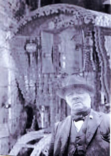 The Museum bought the wagon for the token sum of £10 and then began the arduous task of carrying out restoration work - this turned out to be mainly repainting. By going round horse fairs and Gypsy folki the Museum's Curator eventually found the vardo artist - master waggon painter and traveller Jim Berry, appropriately addressed "of anywhere", who agreed to carry out the intricate decoration work.