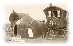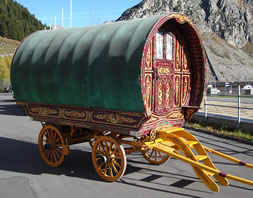 Waggons built to live in, not just to carry persons or goods, developed about 1810 in France. In England these were probably first used by showmen travelling between fairs and with circuses in the 1820s. Gypsies only began living in them about 1850.