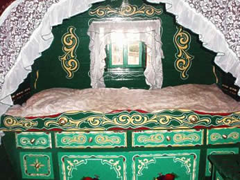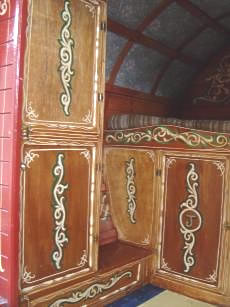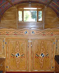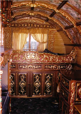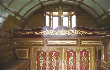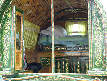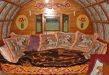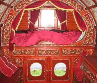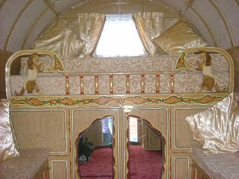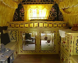 Bowtop interiors showing different styles - from lavish flamboyant to simply plain on the eye.