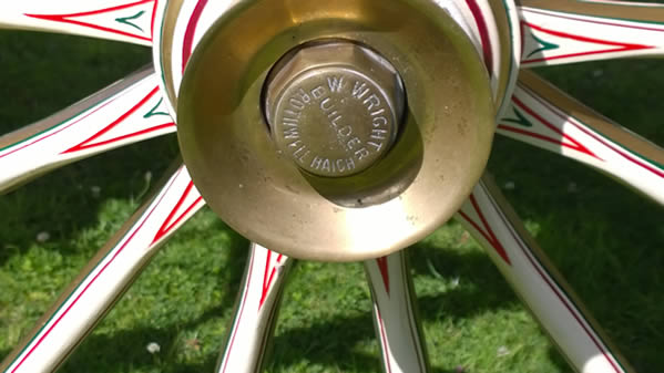 and green flourishes and line work decoration, wheels are on iron tyres with brass