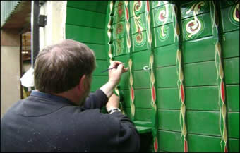 The Romany bowtop waggon, skilfully daubed with ornate artwork, is the finished hand of vardo restorer Nick Dow of the Flyde.