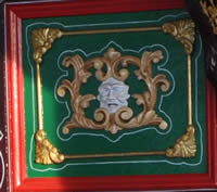The timber panels front and back replaced with rib and matchboard timberwork. Much of the gilded artwork was badly painted over in a dark green and red. The underworks, including all the artwork, obilerated in cream paint.