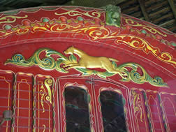 Over the last few years Romani vardos have increasingly become a soft target for organised "gang thieves" in the UK. Often cleverly organised, these shady characters seem to take extraordinary risks to achieve their aims. A classic example is the 2 vardos stolen from the Mary Arden House Museum on Stow Fair Day 2007. The event took place in the middle of the night using a hiab-type lifting tackle on flat bed lorries.