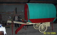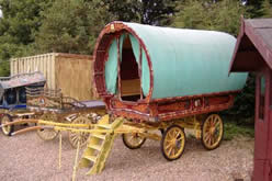 Bowtop Fine example of a lovely bowtop waggon, beautifully decorated on traditional wheels, with S steps. On display at WoodFest 2005.