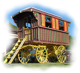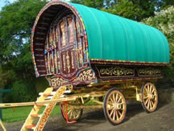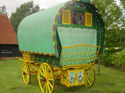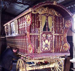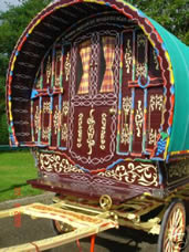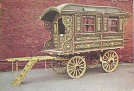 Gypsy Trolley A beautifully restored rare Gypsy trolley, decorated by a Romani artist. Picture courtesy of Unkn. |