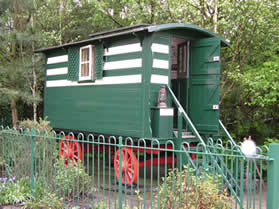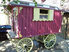 Romany's Vardo 1921 - 1943 Belonged to the BBC Radio broadcaster Rev George Bramwell Evens, who is most famous for his broadcasts on BBC Children's Hour 'Out With Romany' programmes. His young friends Muriel and Doris along with animals Raq the dog and Comma the horse accompanied him on his weekly outings, often centred on the vardo. Romany was our first natural history broadcaster, the forerunner of, and inspiration for, David Attenborough and David Bellamy. Picture courtesy of Phil Shelley/Romany Society. |