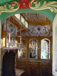 "Mandylion" This waggon was once owned by the well known Buckland fairground family of Northamptonshire. In 1970 master signwriter Kenneth Bethell decorated and restored the waggon. It's now in the process of being fully restored. Lovely interior, with heavily designed acanthus carvings and original cut glass mirrors. Pictures courtesy of Kevin. |