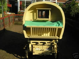 Miniature Bowtop This wagon has been hand-built by Joseph, who was a coach builder. It took 3 years to make and was finally completed in summer 2006. Joe visited several musuem, consulted various experts and made it totally from scratch, including wheels, chassis, leaf springs and the bowtop. The dainty little waggon has numerous hand- painted panels depicting horses, chickens and flowers. Inside there is a small bed and seating area. The wagon measures 6 foot long, 3 foot wide and 5 foot tall. Pictures courtesy of Joe and Simon. |