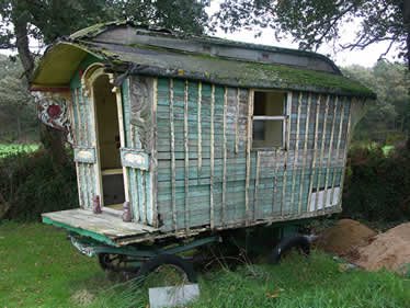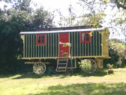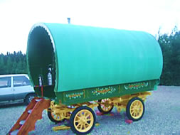 This vardo was built specially for the feature film "WIND IN THE WILLOWS" starring ex-python TERRY JONES. It cost the makers £8,000 to have the waggon constructed, and though it is a mock up and not original, its actually in working order - looks quite the thing to - unusual double porch but wouldn't like to be fine lining that area. Photo courtesy of Steve. |