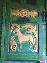 Rare Square Bow Stunning example of a rare square bow finished in dark green and cream coach enamel - artwork of grape vines and floral scrolls professionally excuted in gold leaf and crimson lake. Pictures courtesy of Ken Mayhew. |