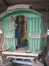 Reading Style Showman. As a co-incidence, when his wife saw the van she recognised it immediately from her childhood when she and her sister had picnics on the treks, and she remembers the vardo well. What a lovely story, and wish you well with the restoration! - Editor. Pictures - special thanks to Glenn and good lady. |