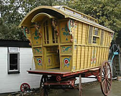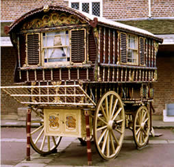 "Reading Caravan" In 2003 the museum acquired this Romany caravan from Mrs Everington of Cowden near East Grinstead to provide an interesting contrast to the other living vans already in their collection. The museum is currently undertaking major conservation work to the caravan. See Features page for more about the restoration!