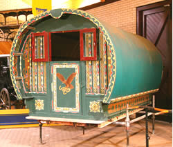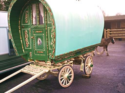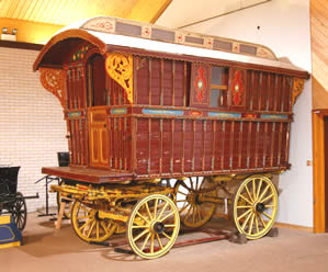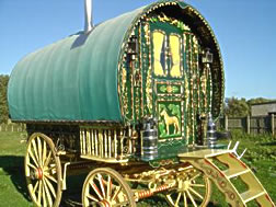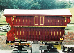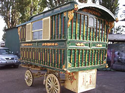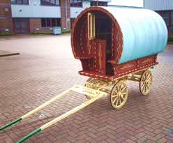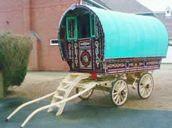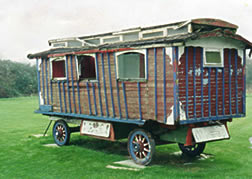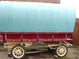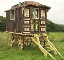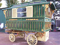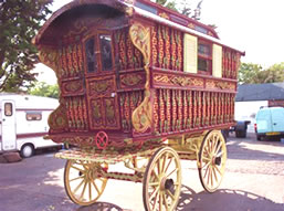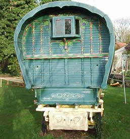 Bowtop - built by Hirst Brothers circa 1918 Uriah Hirst of Woodlesford, Yorkshire once worked for Bill Wright. He then set up on his own making wagons almost indentical to the Wright Waggons. This is the finest one to survive. Window and door type, adorned with gold leafed carvings and beautifully decorated Pictures courtesy of Don |
