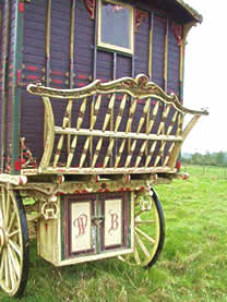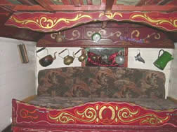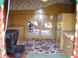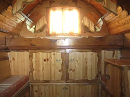 Its once was adored with very distinctive carvings especially the interior as you can see though sadly some of the carving have been stripped out of the van and are decorating someones house in spain! Rumour has it that the waggon was once owned many moons ago by two circus dwarfs. Picture courtesy of Trevor & good lady |