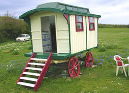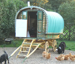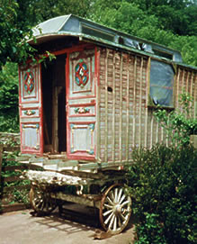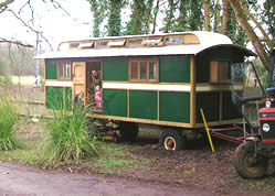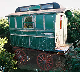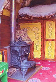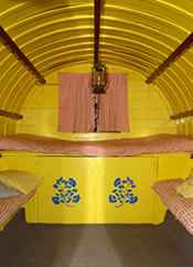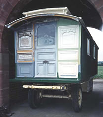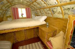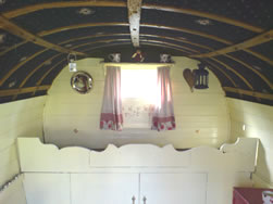 Openlot in the Black Mountains This Openlot Bowtop was lovingly restored by Irish Gypsies. It is now used as a holiday caravan and has settled down in a field on a sheep farm, with views towards the Black Mountains of Wales. Inside are a Queenie stove, pull-out double bed, and a cupboard-bed beneath for a small child. Pictures courtesy of Greg of Under the Thatch. |