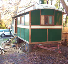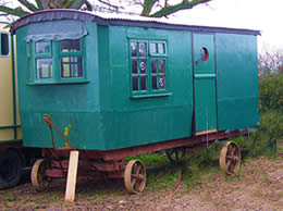 Shepherds huts and Road Workers Waggons? We thought we put this waggon on the site just to show the different contrast between what a shepherds hut / roadworkers waggon may look like against a gypsy waggon as we ve had a few enquires over this recently from waggon owners new to the subject. Anyway Jims about to give it a new lick of coach enamel to capture the spirit of the van once more! Picture courtesy of Jim |