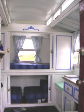 to appleby , the interiors finished nice and light with flash mirrored doors and the traditional queenie stove. Waggons on artillery wheels. Great build. Pictures courtesy of Frank |