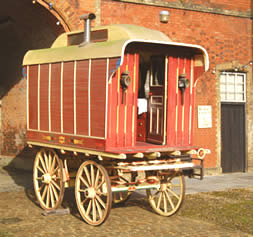Early Reading - Kite Waggon The waggon - believed to have originated from Lincolnshire can now be seen back in its homeland where it rests in peace at Gordon Boswells Museum. It still has its original rare brass cowled The vardo is of simple decoration in crimson lake and primrose theme with flashes of green and bright reds, porch brackets again plain for the period with heavy acanthus leaf design laid on. An icon of all Vardos! Top photo courtesy of Janet Davies Holywell. |