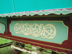 Frank and his friend Arthur both work in there spare time in the theatre and film industry , they wanted to stamp there own curvasious identity on this bowtop and they certainly succeeded - the waggon displays unusual carving on the exterior body boards and the bay windows and kettle box are shapely and styled different to.