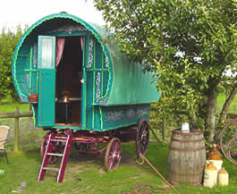This is a typical example of a Gypsy style caravan built in Ireland specifically for the holiday trade and is over 50 years old. It has been in constant use since the 1990's for the holiday business by White Horse Gypsy Caravans.