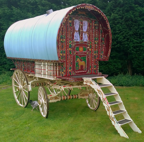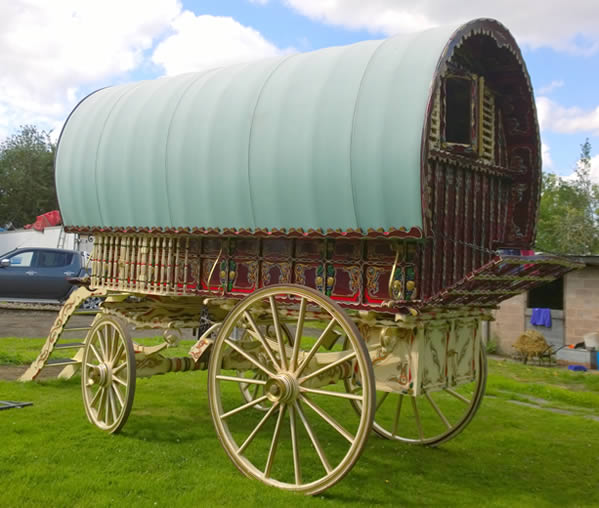 A beautiful example of a Bill Wright-style bowtop caravan.