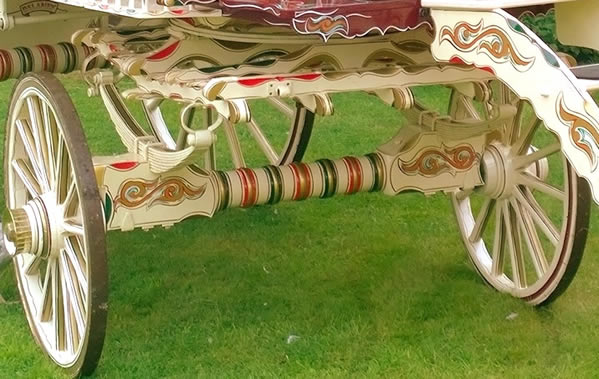 and green flourishes and line work decoration, wheels are on iron tyres with brass