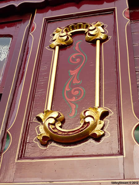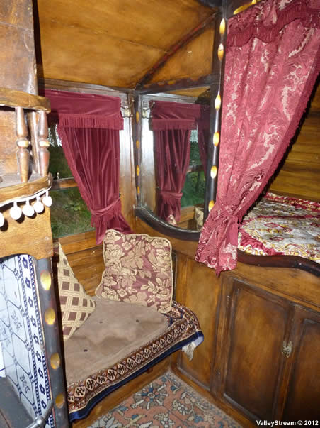 The Tong family were known as one of the finest builders of Romany vardos in Britain, including ledges, readings, burtons and bowtops. Thomas Tong started up as a timber merchant and smith in the 1850s. His business grew into a family affair with the assistance of sons William and Joseph and grandsons William and Thomas II. In the 1890s Trafalgar Boswell (father of Silvester Gordon Boswell) owned the second waggon built by Tong and "it was considered a palace on wheels". Emperor Boss commissioned the last waggon from the Tongs in the 1920s.The waggon for sale is in sound condition and with authentic carvings throughout. However requiring a general tidy up and a redecoration to bring to top condition. Sale includes shafts, steps, rack and pan box. Inside it's fully furnished. Epping-type coal burning range, fixed bed place, display cupboards and oil lamp included.