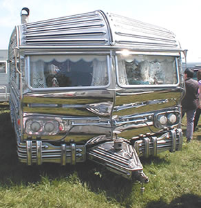 | The late 80s saw the demise of flash - younger travellers didn't want what their parents had, and vans became much plainer over a fairly short period. Finally, much lighter and cheaper German trailers became available, and these were soon taken up. In the UK the last builder to cater for travellers closed down in 2004. Another end of a chapter! |