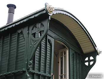 In keeping with their refined ideas, Harry Eve's 1906 Summertown waggon was absent of traditional Gypsy colours and bright decoration, nor was it heavily embellished with gilt carvings.