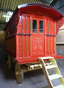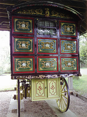 Over the last few years Romani vardos have increasingly become a soft target for organised "gang thieves" in the UK. Often cleverly organised, these shady characters seem to take extraordinary risks to achieve their aims. A classic example is the 2 vardos stolen from the Mary Arden House Museum on Stow Fair Day 2007. The event took place in the middle of the night using a hiab-type lifting tackle on flat bed lorries.