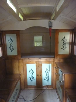 Tragically, the waggon was stolen from a workshop, based in a rural area of North Hampshire, early on Saturday morning, 4th December. The window of the workshop was smashed, considerable damage done, and 7 padlocks and chains cut through. This valuable 100-year-old caravan had been in the family for over 20 years. Recently restored and repainted to its original beautiful condition, this took over 2 years of painstaking work by one of the few craftsmen able to carry out this sort of work.