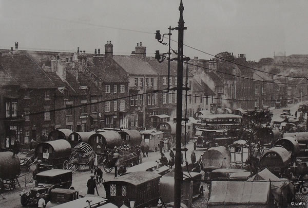 The Town Hall has some interesting photographs of Yarm and the fair. This is a splendid picture taken in 1930 with bowtops, one or two early trailers, ledge waggons, and so on.